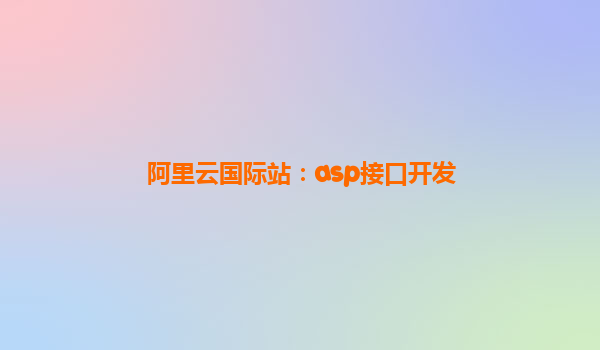 阿里云国际站:ASP接口开发的技术实践与优势解析 一、标题解析:ASP接口开发的核心诉求 标题"阿里云国际站:ASP接口开发"包含三个关键信息: 阿里云国际站:指向全球化
