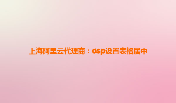 上海阿里云代理商:ASP设置表格居中的解决方案与阿里云优势结合 一、理解ASP设置表格居中的需求 ASP(ActiveServerPages)是一种服务器端脚本环境,广泛应用于动态网页开发。在网页设计中,表格是常