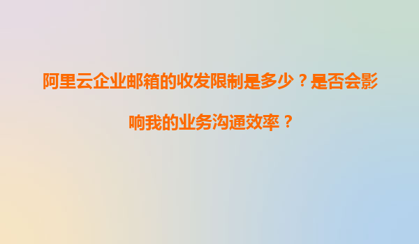 阿里云企业邮箱的收发限制与业务效率保障 企业邮箱作为现代商务沟通的核心工具,其稳定性和效率直接影响业务发展。阿里云企业邮箱凭借强大的技术支持和灵活的配置能力,为用户提供了高效可靠的邮件服务。本文将详