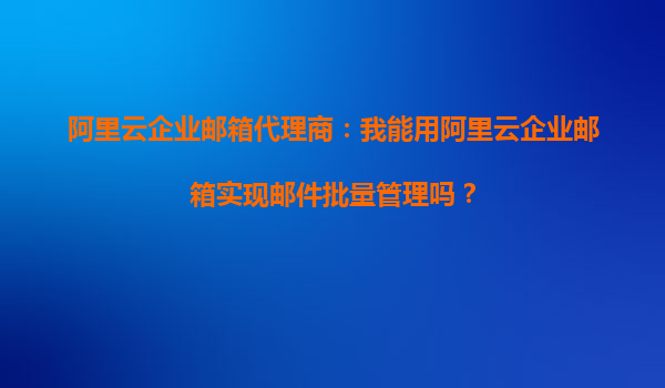 阿里云企业邮箱代理商:阿里云企业邮箱能否实现邮件批量管理堪忧? 随着企业信息化建设的不断深入,企业邮箱作为企业内外沟通的重要工具,其功能性和管理便捷性越来越受到企业的重视。阿里云企业邮箱作为国