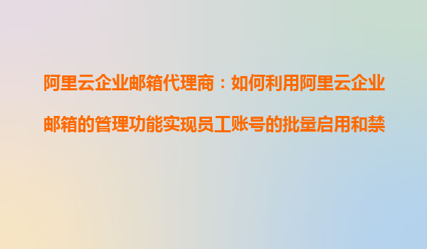 阿里云企业邮箱代理商:巧妙运用企业邮箱管理功能实现员工账号批量管控 在企业数字化转型过程中,高效管理员工邮箱账号是保障信息安全与协作流畅的关键环节。阿里云企业邮箱凭借其强大的管理功能和灵活的代理商服务