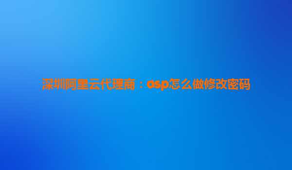 深圳阿里云代理商:ASP如何修改密码的详细指南 在数字化时代,数据安全是企业运营的重中之重。密码作为第一道防线,定期修改密码是保障系统安全的基本措施。对于使用阿里云服务的ASP(ActiveServerPages