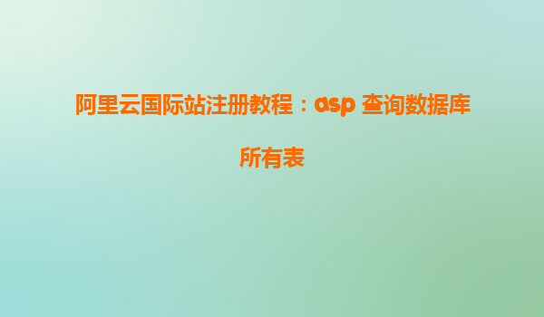 阿里云国际站ASP查询数据库所有表教程 简介 随着企业业务的快速发展,数据库管理和数据查询在现代应用中变得尤为重要。本文将结合阿里云的优势,详细介绍如何使用ASP在阿里云的数据库中查询所有