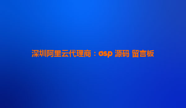 • 深圳阿里云代理商:ASP源码留言板解决方案的优势与应用 一、深圳阿里云代理商的核心价值 作为阿里云在深圳地区的授权代理商,我们专注于为企业提供定制化的云计算解决方案。依托阿里云全球领