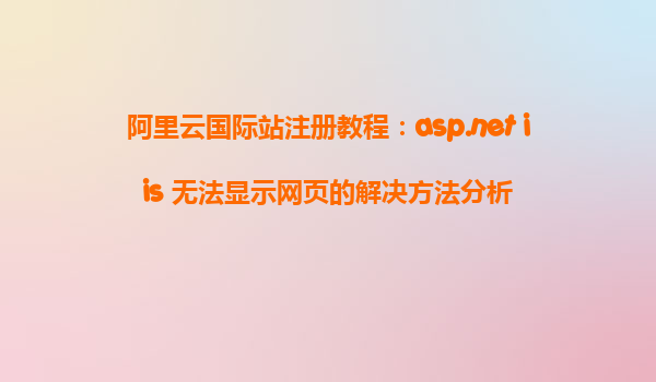 阿里云国际站注册教程:asp.netIIS无法显示网页的解决方法分析 在现代网站开发中,ASP.NET技术因其高效和稳定性,广泛应用于企业级和个人站点开发。然而,很多开发者在将ASP.NET应用部署到IIS服务器时,常常会