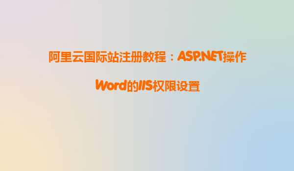 阿里云国际站注册教程:ASP.NET操作Word的IIS权限设置 随着云计算的快速发展,越来越多的企业和个人选择将自己的应用部署到云端。阿里云作为国内外领先的云服务提供商,提供了稳定、可靠且安全的云计算服务。在本教