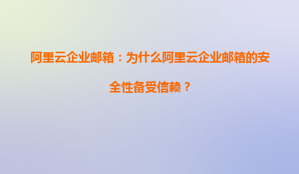 阿里云企业邮箱:为什么阿里云企业邮箱的安全性备受信赖? 在当今数字化时代,企业邮箱作为企业与客户、合作伙伴沟通的重要工具,其安全性直接影响企业的数据保护和商业声誉。阿里云企业邮箱凭借强大的安全