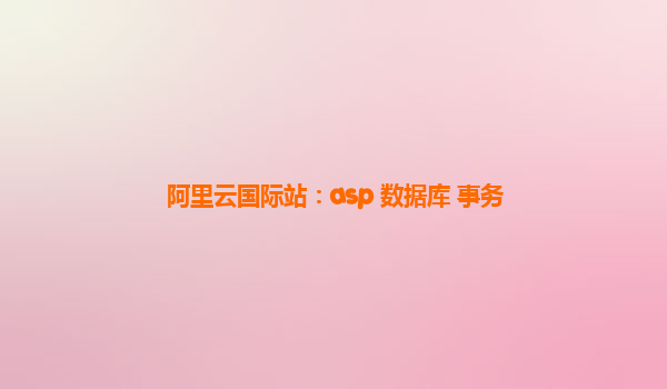 阿里云国际站:ASP数据库事务管理优势分析 一、ASP数据库事务概述 在数据库管理中,事务(Transaction)是指一组操作的集合,这些操作要么全部执行成功,要么全部回滚,不会出现部分成功部分失败的情况。事务的主要