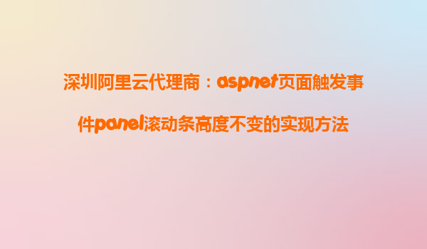深圳阿里云代理商:ASP.NET页面触发事件Panel滚动条高度不变的实现方法 在开发ASP.NET应用时,经常会遇到页面中需要滚动的情况,而在一些情况下,我们希望在触发某些事件时,滚动条的高度保持不变。特别是