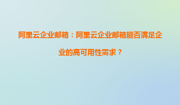 阿里云企业邮箱:满足企业高可用性需求的最佳选择 随着数字化时代的到来,企业对信息沟通的效率和安全性要求越来越高。企业邮箱作为日常办公和沟通的重要工具,如何选择一个高可用、稳定可靠的服务平台显得尤为重