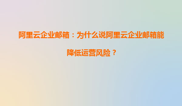 阿里云企业邮箱:为什么说阿里云企业邮箱能降低运营风险? 在数字化时代,企业邮箱不仅是沟通工具,更是企业信息安全的重要防线。阿里云企业邮箱凭借其强大的技术实力和丰富的功能,成为众多企业降低运营风