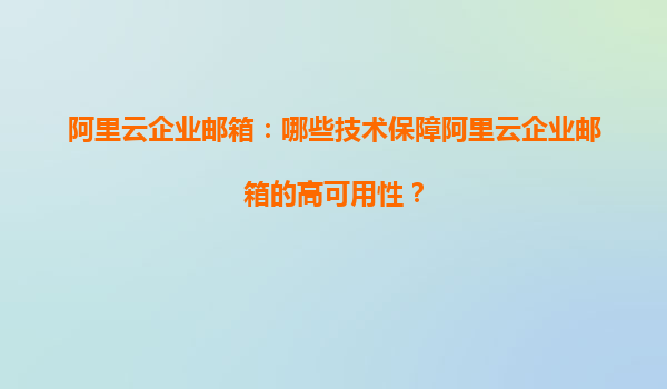 阿里云企业邮箱:哪些技术保障阿里云企业邮箱的高可用性? 引言 在数字化时代,企业邮箱不仅是沟通工具,更是企业形象和业务连续性的重要保障。阿里云企业邮箱凭借其强大的技术实力和丰富的实践经验,成为