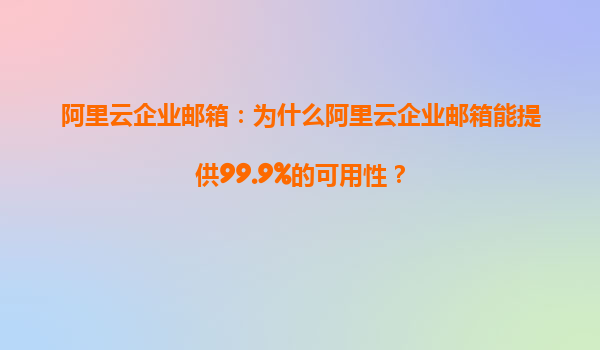 阿里云企业邮箱:为什么阿里云企业邮箱能提供99.9%的可用性? 在当今数字化时代,企业邮箱已经成为企业内外沟通的重要工具。而阿里云企业邮箱凭借其99.9%的高可用性,赢得了越来越多企业的青睐。那么,阿里
