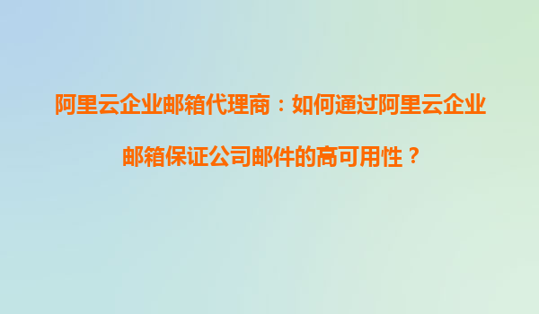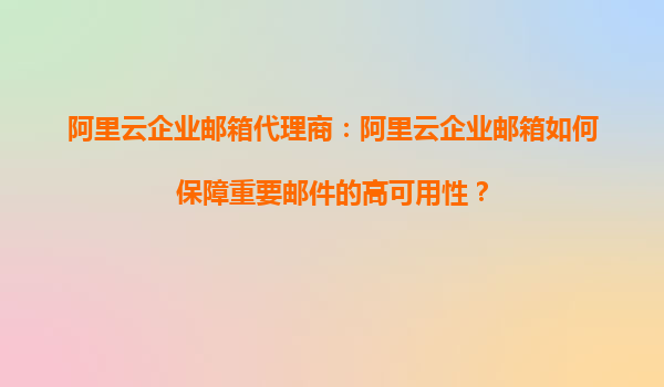 阿里云企业邮箱代理商:如何通过阿里云企业邮箱保证公司邮件的高可用性? 一、高可用性的重要性 在数字化办公时代,企业邮箱已成为日常沟通和业务协作的核心工具。邮件系统的高可用性(HighAvailability,H