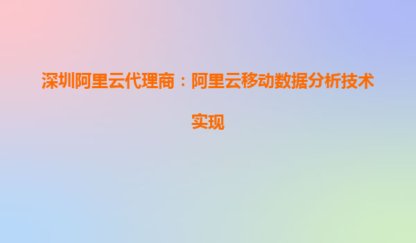 深圳阿里云代理商:阿里云移动数据分析技术实现 一、阿里云移动数据分析的技术优势 阿里云作为全球领先的云计算服务提供商,其移动数据分析技术依托于强大的云计算基础设施和大数据处理能力。通过分布式计