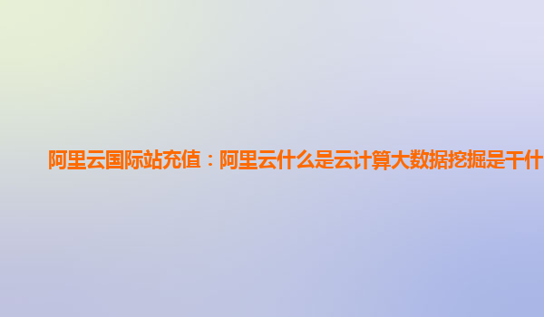 阿里云国际站充值:阿里云什么是云计算大数据挖掘是干什么的 随着信息化时代的快速发展,云计算、大数据技术逐渐进入我们的日常生活和工作中,成为各行各业进行数字化转型的关键技术。而阿里云作为全球领先的