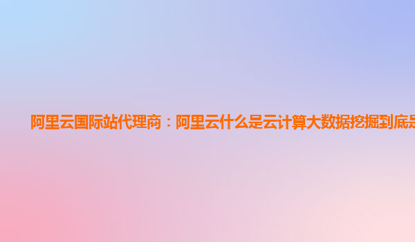 阿里云国际站:阿里云什么是云计算大数据挖掘是什么意思? 在现代科技日新月异的今天,云计算和大数据已经成为推动企业发展的重要技术手段。阿里云作为全球领先的云计算服务提供商,不仅为企业提供了强大的云计算能