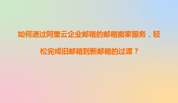 如何通过阿里云企业邮箱的邮箱搬家服务,轻松完成旧邮箱到新邮箱的过渡? 一、为什么选择阿里云企业邮箱? 阿里云企业邮箱作为国内领先的企业级邮箱服务,凭借其稳定、安全、高效的特点,成为众多企业