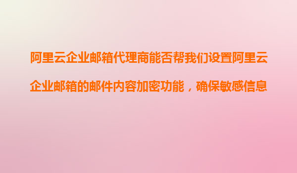 阿里云企业邮箱代理商能否帮我们设置阿里云企业邮箱的邮件内容加密功能? 随着企业对数据安全重视程度的提升,邮件加密已成为保障信息传输安全的关键需求之一。许多用户关心:阿里云企业邮箱代理商是否可以协