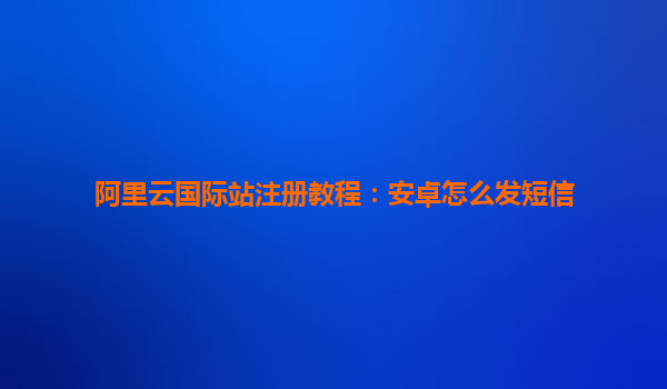 • 阿里云国际站注册教程:安卓怎么发短信 随着云计算和互联网技术的飞速发展,阿里云作为全球领先的云服务平台,凭借其强大的基础设施和技术优势,已成为众多企业和开发者首选的云服务提供商。在阿里云国际