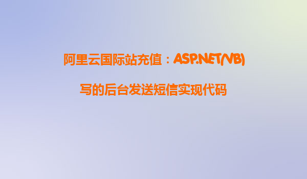 • 阿里云国际站充值:ASP.NET(VB)写的后台发送短信实现代码 在现代的网络应用中,短信作为一种重要的用户验证和通知手段,广泛应用于电商、金融、社交等各种领域。阿里云作为全球领先的云计算服务提供商,其短信服务