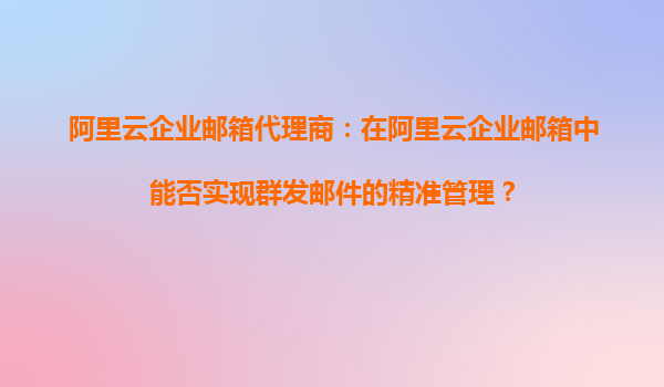 阿里云企业邮箱代理商:在阿里云企业邮箱中能否实现群发邮件的精准管理? 一、阿里云企业邮箱的群发邮件功能概述 阿里云企业邮箱作为一款专业的企业级邮件服务,提供了强大的群发邮件功能。通过其
