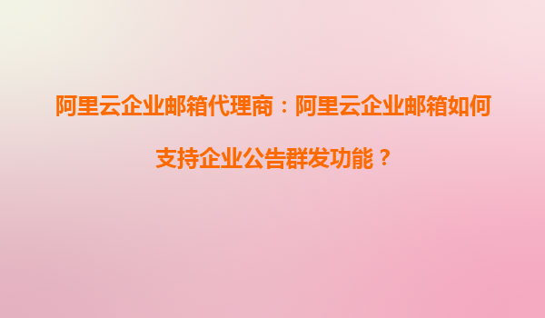 阿里云企业邮箱代理商:阿里云企业邮箱如何支持企业公告群发功能? 在当今快节奏的商业环境中,高效的企业沟通工具是提升团队协作效率的关键。阿里云企业邮箱作为一款专业的企业级邮箱服务,不仅提供