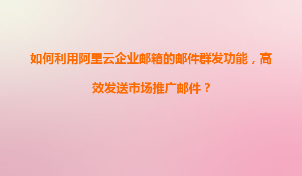 如何利用阿里云企业邮箱的邮件群发功能,高效发送市场推广邮件? 一、阿里云企业邮箱的邮件群发功能优势 阿里云企业邮箱作为一款专业的企业级邮件服务工具,其邮件群发功能在市场推广中具备显著优