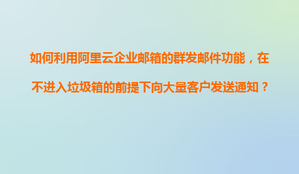 如何利用阿里云企业邮箱的群发邮件功能,在不进入垃圾箱的前提下向大量客户发送通知? 在数字化时代,电子邮件依然是企业和客户沟通的重要渠道之一。尤其是当企业需要向大量客户发送通知时,高效且安全的群发邮件功