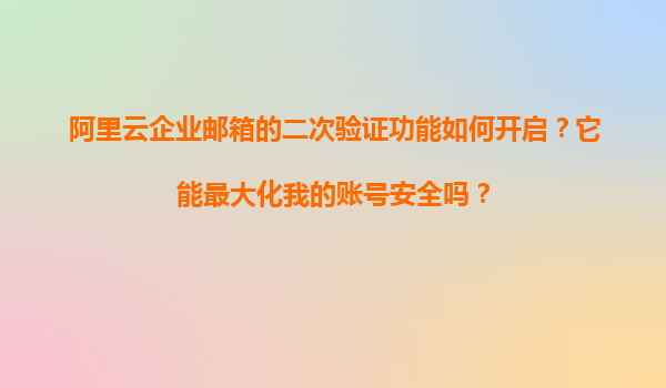 阿里云企业邮箱二次验证功能:开启指南与安全保障解析 一、阿里云企业邮箱二次验证功能如何开启? 阿里云企业邮箱的二次验证(Multi-FactorAuthentication,MFA)功能通过增加登录验证步骤,显著提升账号