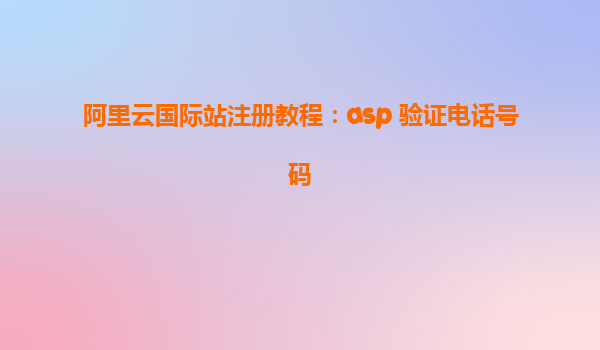 阿里云国际站注册教程:ASP验证电话号码 一、阿里云国际站注册流程简介 阿里云国际站(AlibabaCloudInternational)是全球领先的云计算服务提供商,为全球用户提供稳定、安全、高效的云服务。注册阿里云国际站
