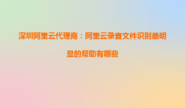 深圳阿里云代理商:阿里云录音文件识别最明显的帮助有哪些 随着科技的进步,语音识别技术越来越被应用于各行各业,尤其在云计算领域,阿里云作为领先的云计算服务提供商,其语音识别服务已经得到了广泛的应用,尤其