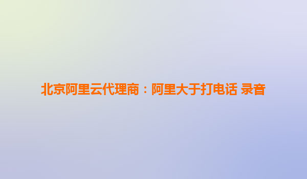 北京阿里云代理商:阿里大于打电话录音解决方案深度解析 一、标题核心内容拆解 标题"北京阿里云代理商:阿里大于打电话录音"包含三个关键信息点: 地域属性:北京地区服务,体现本地化服务能