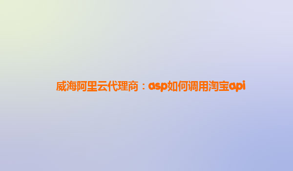 威海阿里云代理商:asp如何调用淘宝api 作为威海阿里云代理商,我们经常接触到客户需要通过ASP来调用淘宝API的需求。在这篇文章中,我们将介绍如何使用ASP调用淘宝API,并结合阿里云和阿里云代理商的优势。 调用淘