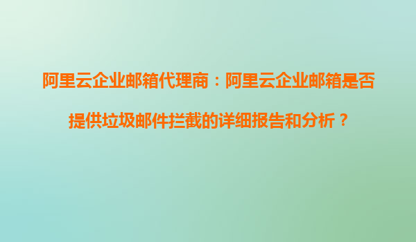 阿里云企业邮箱代理商:阿里云企业邮箱是否提供垃圾邮件拦截的详细报告和分析? 引言 在当今数字化时代,企业邮箱不仅是沟通的重要工具,更是企业信息安全的第一道防线。垃圾邮件的泛滥不仅影响工作效率,