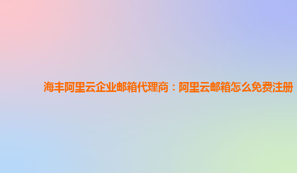 海丰阿里云企业邮箱代理商:阿里云邮箱怎么免费注册 阿里云企业邮箱是一款专为企业用户提供的高效、安全的邮件服务。如何免费注册阿里云企业邮箱呢?本文将为您详细介绍。 步骤一:选择阿里云企业邮箱代理商 海丰