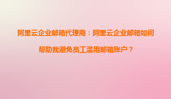 阿里云企业邮箱代理商:阿里云企业邮箱如何帮助我避免员工滥用邮箱账户? 在现代企业中,电子邮件是最常用的沟通工具之一,但员工滥用邮箱账户可能会带来诸多风险,如数据泄露、垃圾邮件泛滥、内部信