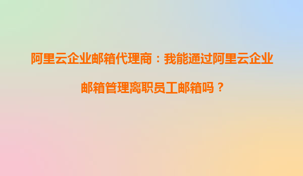 阿里云企业邮箱代理商:我能通过阿里云企业邮箱管理离职员工邮箱吗? 在现代企业管理中,员工流动是不可避免的现象。无论是主动离职还是被动解雇,企业都需要妥善处理离职员工的邮箱账户,以确保数据安全和