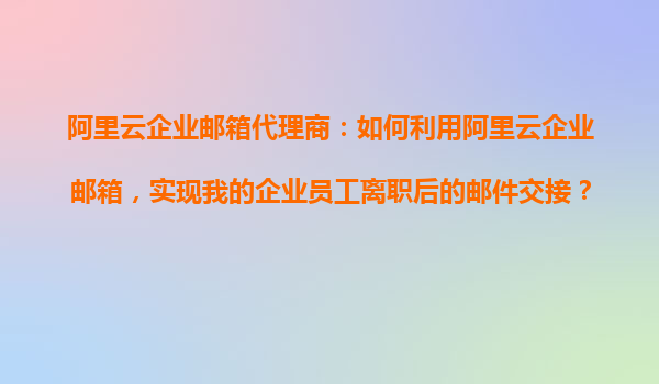 阿里云企业邮箱代理商:如何利用阿里云企业邮箱,实现我的企业员工离职后的邮件交接? 引言 在现代企业管理中,员工流动是不可避免的现象。然而,员工离职后如何高效、安全地交接其企业邮箱中的邮
