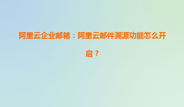 阿里云企业邮箱:阿里云邮件溯源功能怎么开启? 一、阿里云企业邮箱的核心优势 在数字化办公时代,企业邮箱不仅是沟通工具,更是信息安全的重要防线。阿里云企业邮箱凭借其强大的技术实力和丰富的