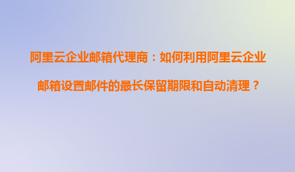 阿里云企业邮箱代理商:如何利用阿里云企业邮箱设置邮件的最长保留期限和自动清理? 在数字化办公时代,企业邮箱的安全性、稳定性及高效管理能力成为企业选择服务商的重要考量。作为国内领先的云计算服务