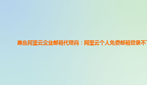嘉鱼阿里云企业邮箱代理商:阿里云个人免费邮箱登录不了 背景介绍 阿里云企业邮箱代理商嘉鱼是一家专门为企业提供云端邮件解决方案的公司,公司与阿里云有着密切的合作关系。阿里云企业邮箱是一款功能强大、安全稳