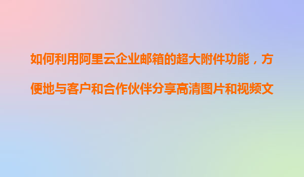 如何利用阿里云企业邮箱的超大附件功能高效分享高清图片和视频 在数字化商务合作中,高清图片、4K视频等大文件的传输需求日益增长。阿里云企业邮箱凭借其创新的"超大附件"功能,为企业用户提供了安全稳定的文件