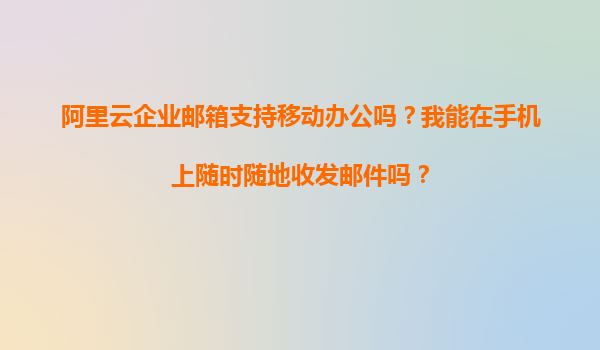 阿里云企业邮箱支持移动办公吗?我能在手机上随时随地收发邮件吗? 在数字化和移动化办公日益普及的今天,企业邮箱的移动办公能力成为许多用户关注的焦点。阿里云企业邮箱作为国内领先的企业邮件服务之一,