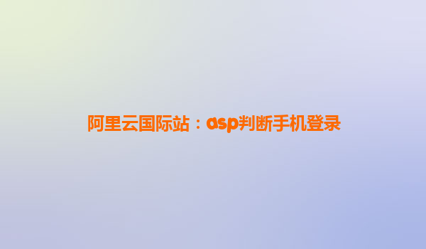 阿里云国际站:ASP判断手机登录的实现方案与优势解析 1.ASP判断手机登录的技术背景与需求 在移动互联网时代,用户通过手机访问网站的比例已超过PC端。对于企业级应用尤其是国际化业务场景(如阿里云国际站