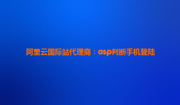 阿里云国际站代理商:ASP判断手机登录与云计算服务优势解析 一、移动互联网时代的登录检测技术 在当今移动优先的数字环境中,通过ASP技术判断用户是否使用手机登录已成为企业基础能力。以下是典型的ASP