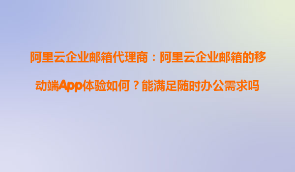 阿里云企业邮箱代理商:阿里云企业邮箱的移动端App体验解析 在当今快节奏的商业环境中,随时随地的办公需求已成为企业高效运转的关键。阿里云企业邮箱作为国内领先的企业邮箱服务之一,其移动端App成为许多企业