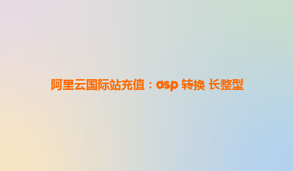 阿里云国际站充值:ASP转换长整型的技术实践与优势解析 一、ASP转换长整型的应用场景 在阿里云国际站充值与支付系统开发中,ASP(ActiveServerPages)作为经典的服务端脚本技术,常需处理