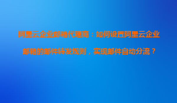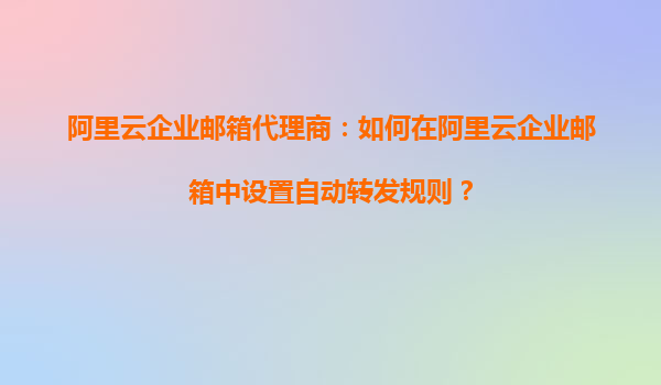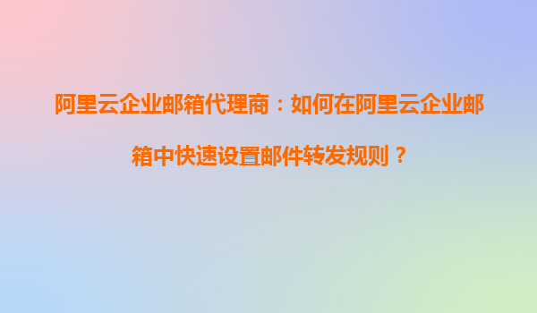 阿里云企业邮箱代理商:如何在阿里云企业邮箱中快速设置邮件转发规则? 阿里云企业邮箱作为国内领先的企业级邮箱服务,凭借其高安全性、稳定性和丰富的功能,深受企业用户的青睐。而作为阿里云企业邮箱的代理商