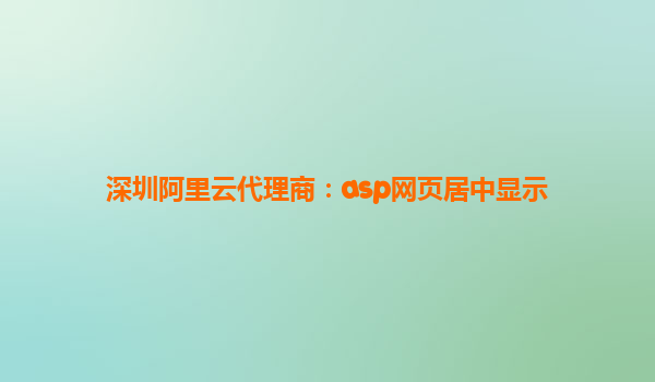 深圳阿里云代理商为您解析:ASP网页居中显示的秘笈 在网站建设中,ASP技术因其灵活性和强大功能一直备受开发者青睐。但如何让ASP网页完美居中显示却困扰着不少开发者。作为深圳阿里云代理商,我们将结合阿里云的
